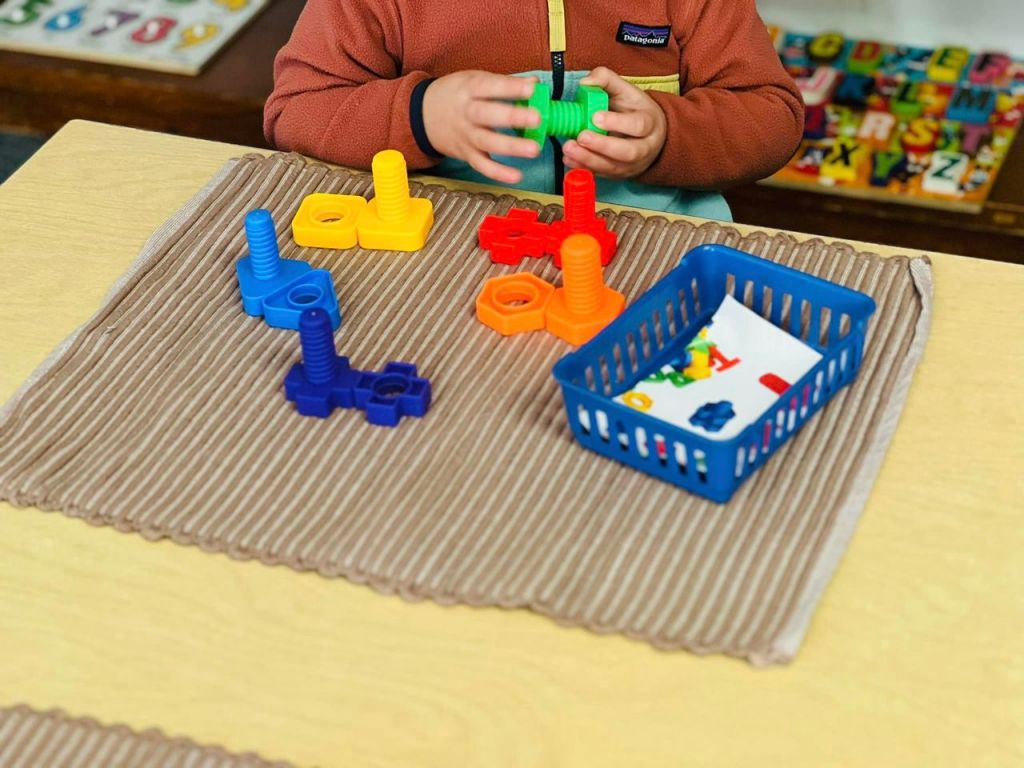 This Montessori activity uses counting pegs to teach numbers and quantity through hands-on learning. Children place pegs in slots corresponding to each number, helping them understand numerals and their values. It encourages independent exploration, builds fine motor skills, and reinforces math concepts by allowing children to learn through direct, purposeful interaction with materials.